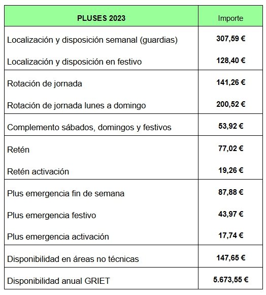 El porcentaje del 5,7% es con el que se han actualizado para 2023 las tablas salariales, complementos y pluses del convenio y también sirve para determinar cómo será la revisión salarial general de este año, cuya previsión es que se realice el próximo abril:
