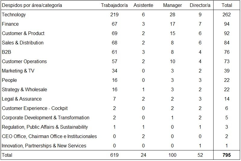 QUINTO. Se ha opinado, sin datos, que este ERE apuntaría principalmente a la estructura media/alta de la empresa, esto es, al personal de dirección… No es verdad. De los 795 despidos que se pretenden, 152 serían directores y el resto, 643, especialistas, técnicos, administrativos, asistentes, etc. Una vez más, el mayor peso de los despidos recaerá sobre los de siempre: el personal de abajo.