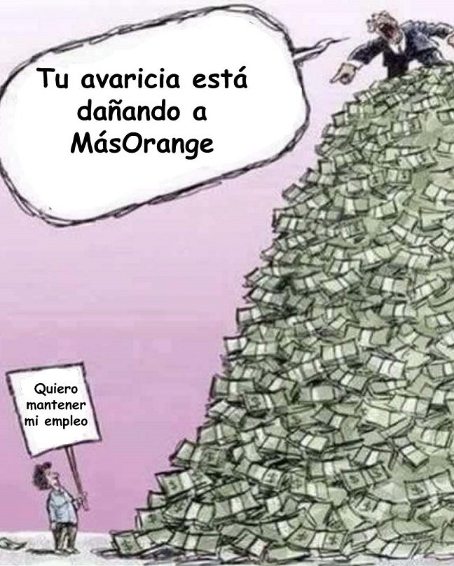 De todos modos, respecto al presunto apocalipsis financiero de MásOrange, cabría preguntarse por el impacto del pelotazo de la joint venture, cuando el grupo Orange trincó un megadividendo de 4.400 millones de euros y los fondos de capital riesgo de MásMóvil otros 1.660 millones. También habría que analizar los bonus millonarios que han pillado el CEO y sus colegas o la pesadísima losa en forma de pago de intereses por la gigantesca deuda que arrastraba MásMóvil y que ahora en MásOrange se ha duplicado. La avaricia de la directiva es salvaje.