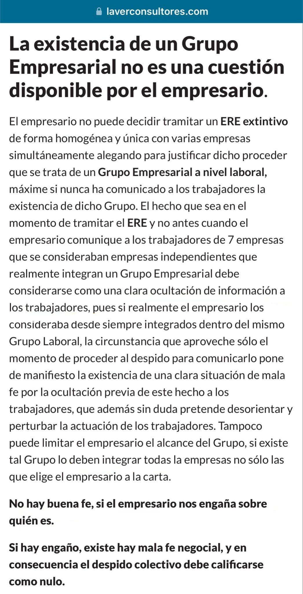 Consideramos ilegítima la mesa de negociación, maquinada a medida por la Dirección para desvirtuar la representatividad social y crear de manera ficticia y sorpresiva un aparente Grupo Laboral que no se corresponde con la realidad económica y empresarial de la compañía.