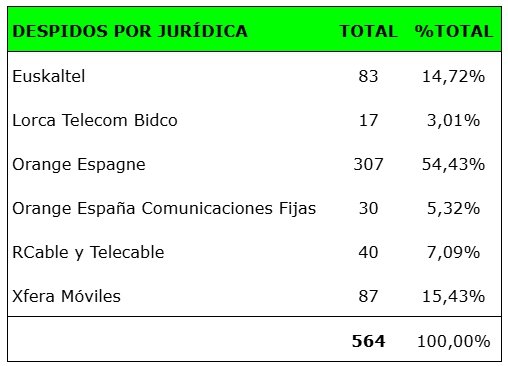• Confirmamos que la plantilla de Orange ha sufrido la mayoría de los despidos del ERE; de las 564 extinciones laborales, OSP y OSFI acumulan por el momento un total de 337 despidos.