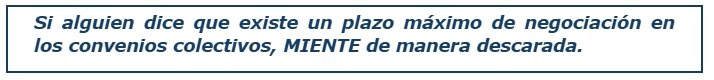 Los convenios, como cualquier otro acuerdo, han de negociarse de buena fe, pero no hay plazos acotados: las negociaciones duran el tiempo necesario para alcanzar el acuerdo, uno, dos, tres años… Es más, resulta perfectamente posible que las negociaciones se alarguen un montón de tiempo y que no lleguen a nada; o que se suspendan durante unos cuantos meses y luego se retomen.